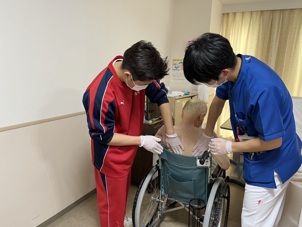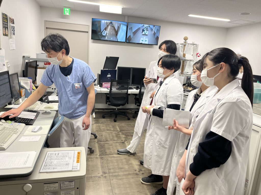 当日は、各部門のスタッフの皆さまから日常業務などについて丁寧なご説明をいただくとともに、実際の医療現場で患者さんと向き合う場面も見学・体験させていただきました。医療の現場特有の緊張感の中で、生徒たちは責任の重さと専門職としての使命感を肌で感じる貴重な機会となりました。