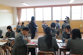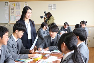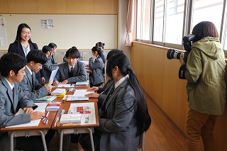 2026年4月24日 / 最終更新日時 : 2026年4月24日 editor 学校からのお知らせ パンフレット写真撮影その2 2026年4月24日(金)先週の火曜日に引き続き、プロのカメラマンにより、パンフレットやポスター用に制服の紹介や部活動の注目選手の撮影、授業風景や昼食風景などの撮影が行われました。授業風景は2年1組に協力してもらい、「英語コミュニケーションⅡ」の授業が撮影されました。みんな和気あいあいとして明るく、とても楽しそうな雰囲気の授業でした。関係の皆さん、お疲れ様でした。